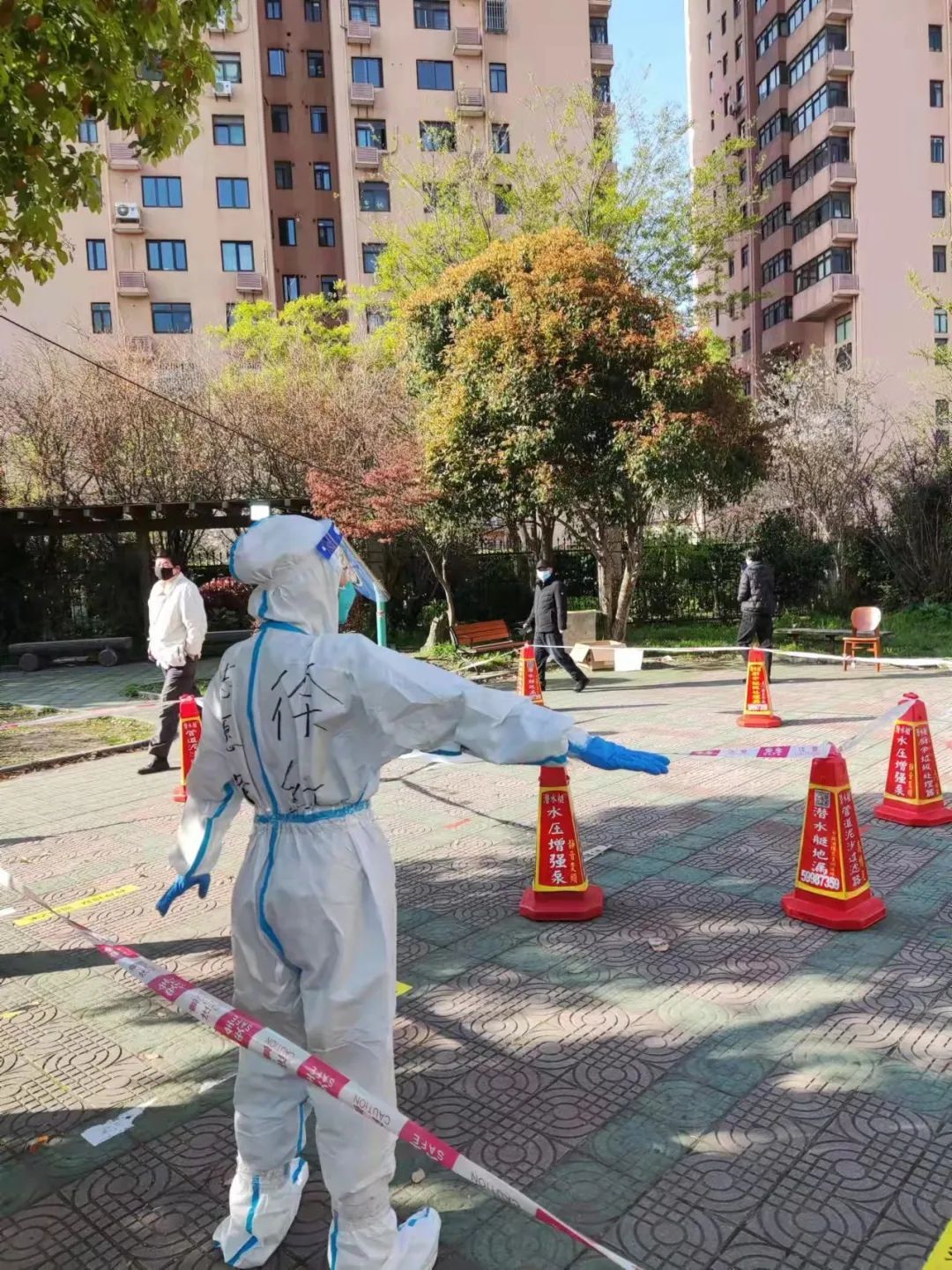 王玥雯:抗原检测支援有我!我在徐汇区徐家汇街道柿子湾居民区为居民发抗原试剂。