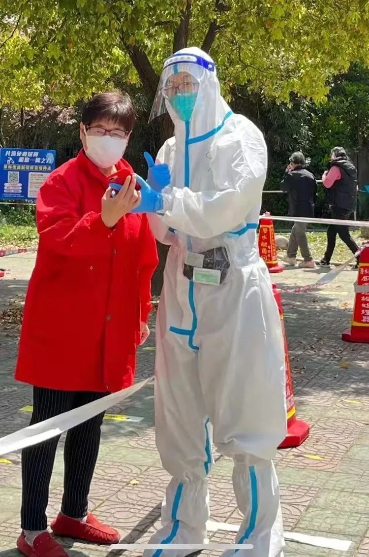 前几天气温高,穿着厚重防护服的她在炽热的太阳底下一遍遍地向居民解释登记流程,有的老人没有智能手机,有的居民网络不畅,她便用自己的手机帮忙登记、截屏……