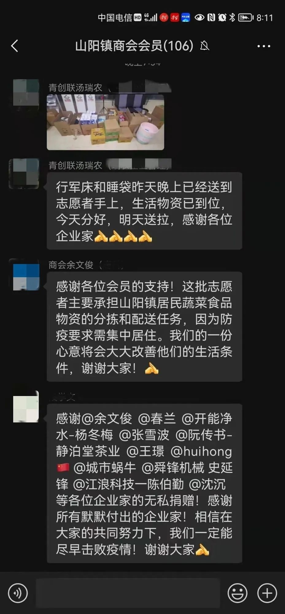 山阳镇商会会员齐心协力,支援山阳抗疫,出资出力,改善蔬菜分拣工作人员基本生活。