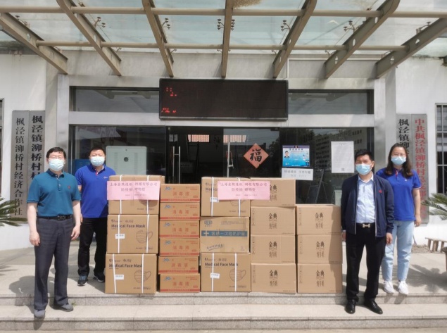 上海金熊造纸网毯有限公司向枫泾镇泖桥村捐赠了10000个医用口罩、消毒酒精、防护服、纯牛奶等防疫及生活物资,助力泖桥村防疫工作。