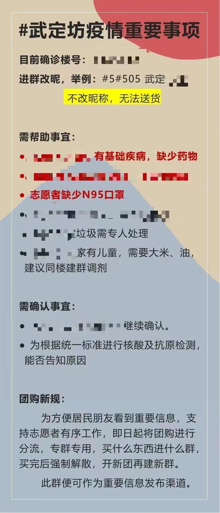 考虑到居民不同需求,志愿者还发布了《致武定坊居民的一封信》,在这封信中,详细发布了团购规则的注意事项、居民们的参与方式以及志愿者们的工作规范,“细到每个求助、每个项目跟进,都会及时在群内通知,信息是公开的、及时的。”Issa说道。