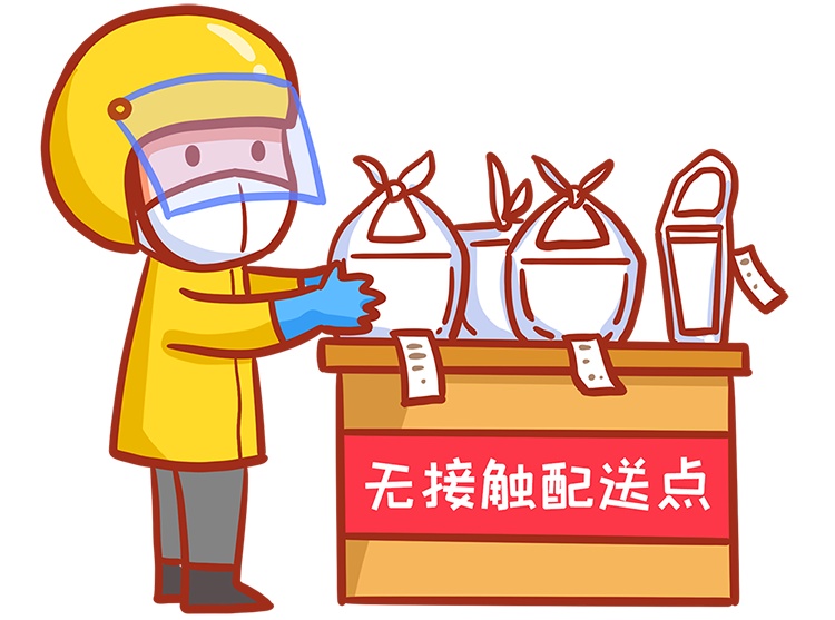 1. 配送员送至小区门口后,尽量避免当面交接,或者隔门对话,确认收货。