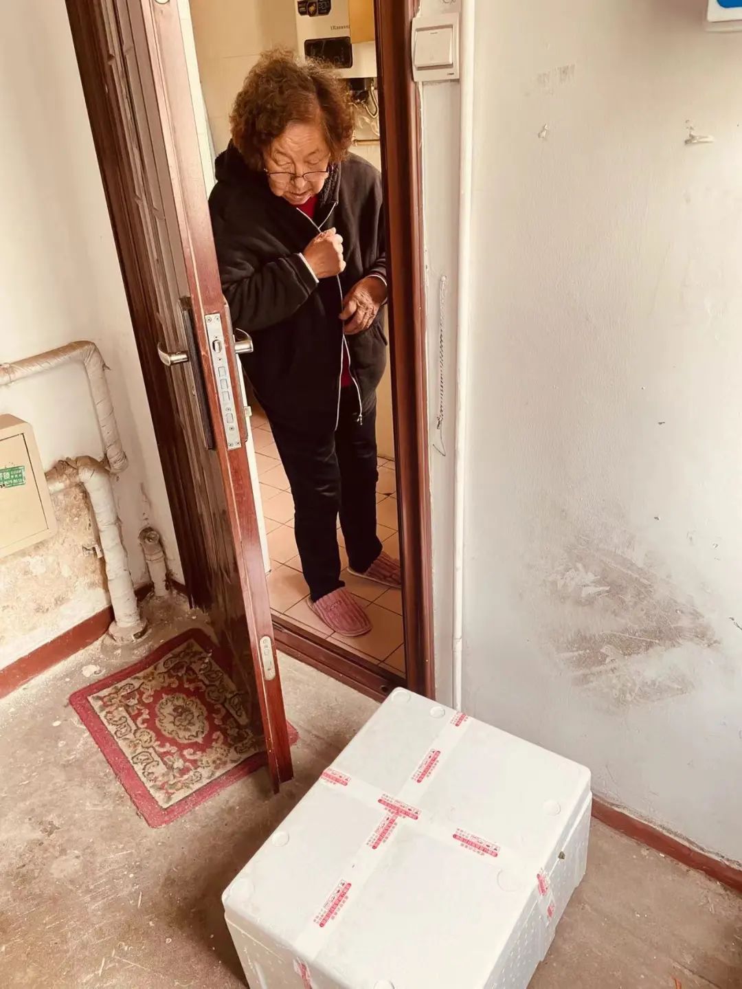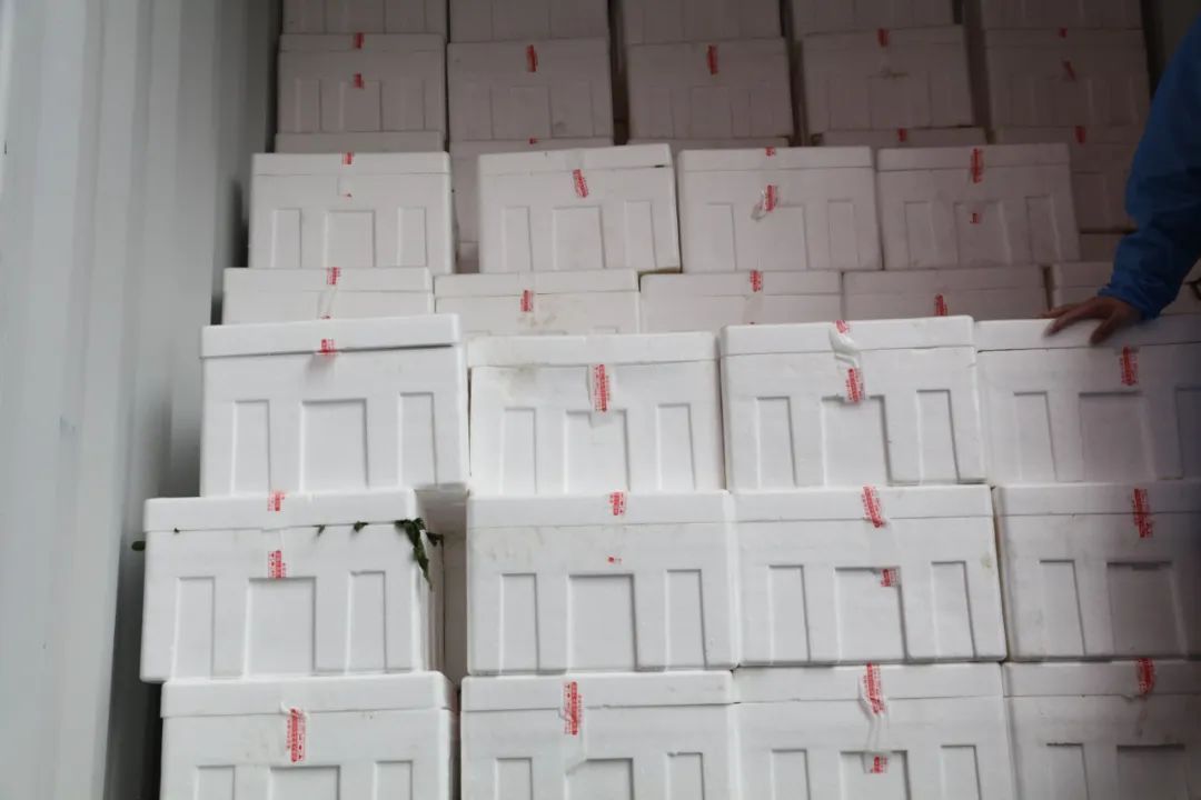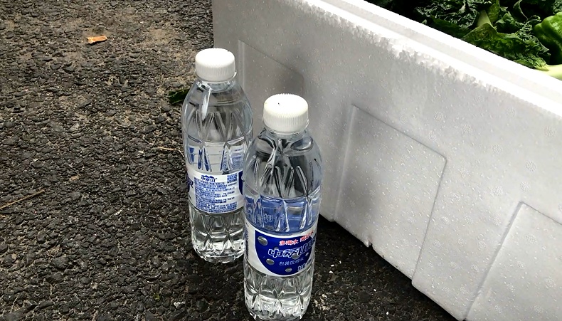 考虑到蔬菜的保鲜问题,启东人民在装箱时把矿泉水事先冻成冰,然后放在大礼包中为蔬菜保鲜,贴心至极。