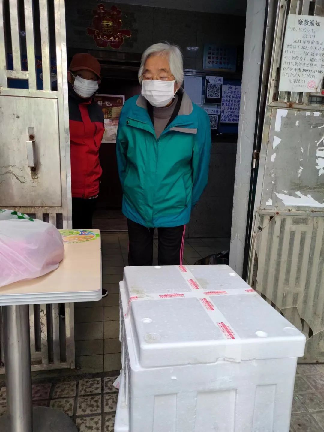 小区的老人们收到满载爱心的新鲜的蔬菜,都纷纷表示感谢。