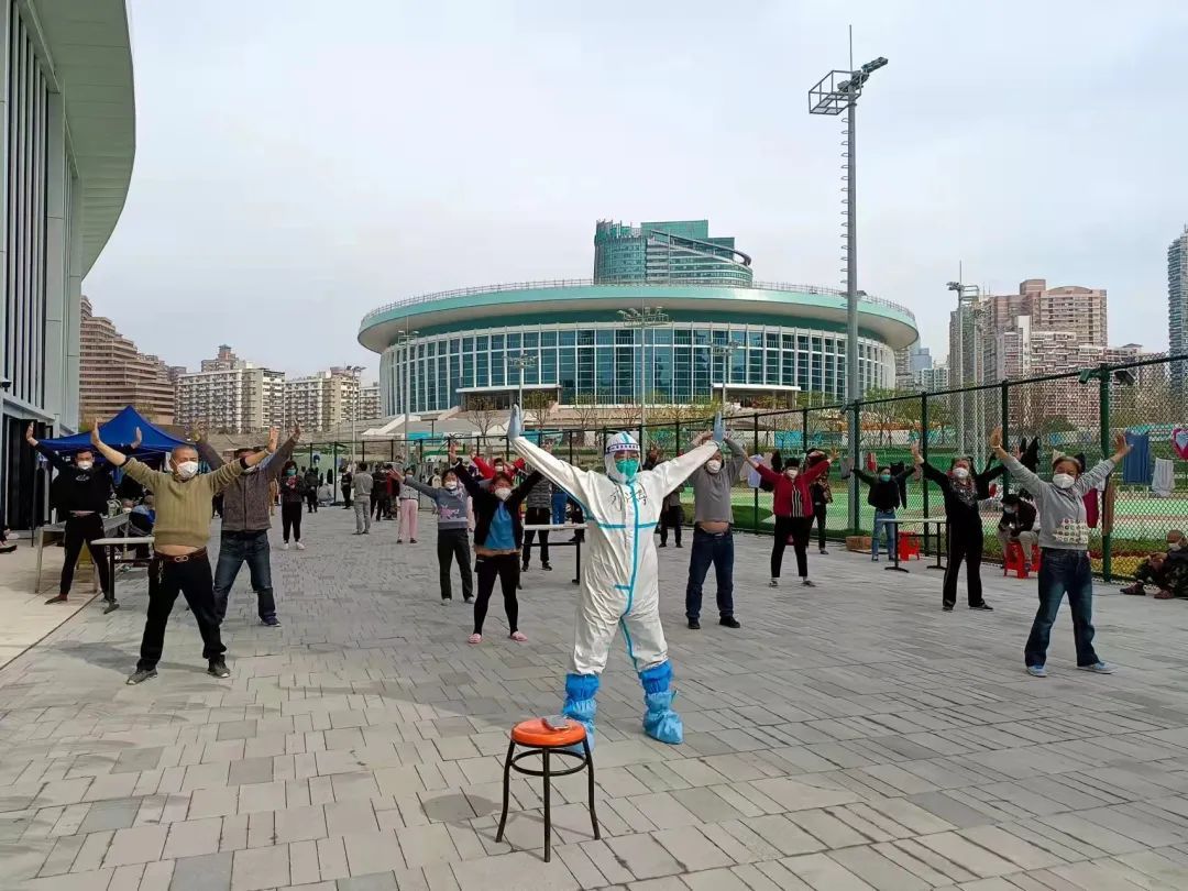 事实上为了适应方舱内佩戴口罩的情况,医生们在进入方舱之前就做了筛选和部分改编,赵医生说:“后期如果病人有兴趣,也可以教一些易筋经,或者其他一些适合的动作。特别是,我们还有专门研究武术功法的上海体院博士刘洪涛,进行技术指导。”