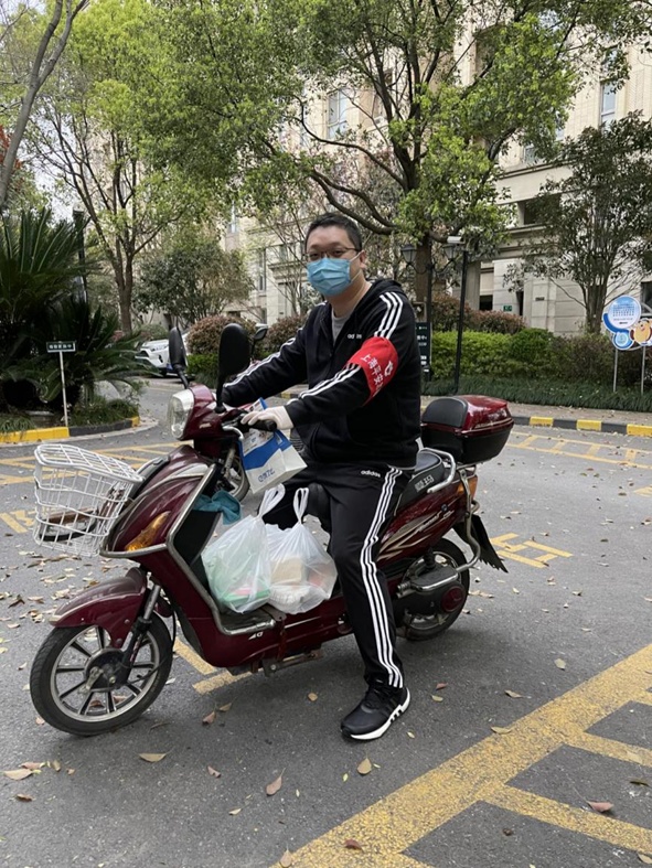 家住闵行区茉莉公馆的陆家嘴支行党支部书记、副行长张勇近来格外忙碌。茉莉公馆作为一个拥有636户、超2000人的大型居住小区,在小区封闭管理期间志愿者严重短缺,本就是上海市志愿者的张勇立即报名,主要任务是帮助居民运输分发快递、生鲜、药品,以及小区内秩序维护工作。张勇发现原先各楼栋运送物资和快递主要靠人工提、平板车拖、购物车推等方式,费时费力效率还不高,于是他骑上家中闲置的“小电驴”,每天几十次往返小区大门和居民楼运送快递。“快递小张”成了张行长的新称呼。