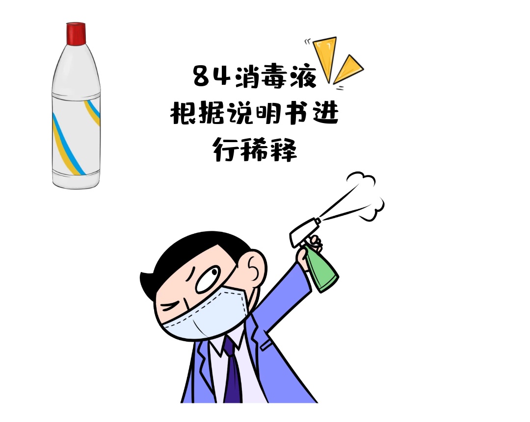 含氯消毒剂。常见的有漂白粉、84消毒液。无论什么样的含氯消毒剂,关键是要看“有效氯的浓度”。通常500~1000mg/L的浓度已经足够。84消毒液标签上写了有效氯浓度为多少,你就根据说明加一定的水进行稀释。