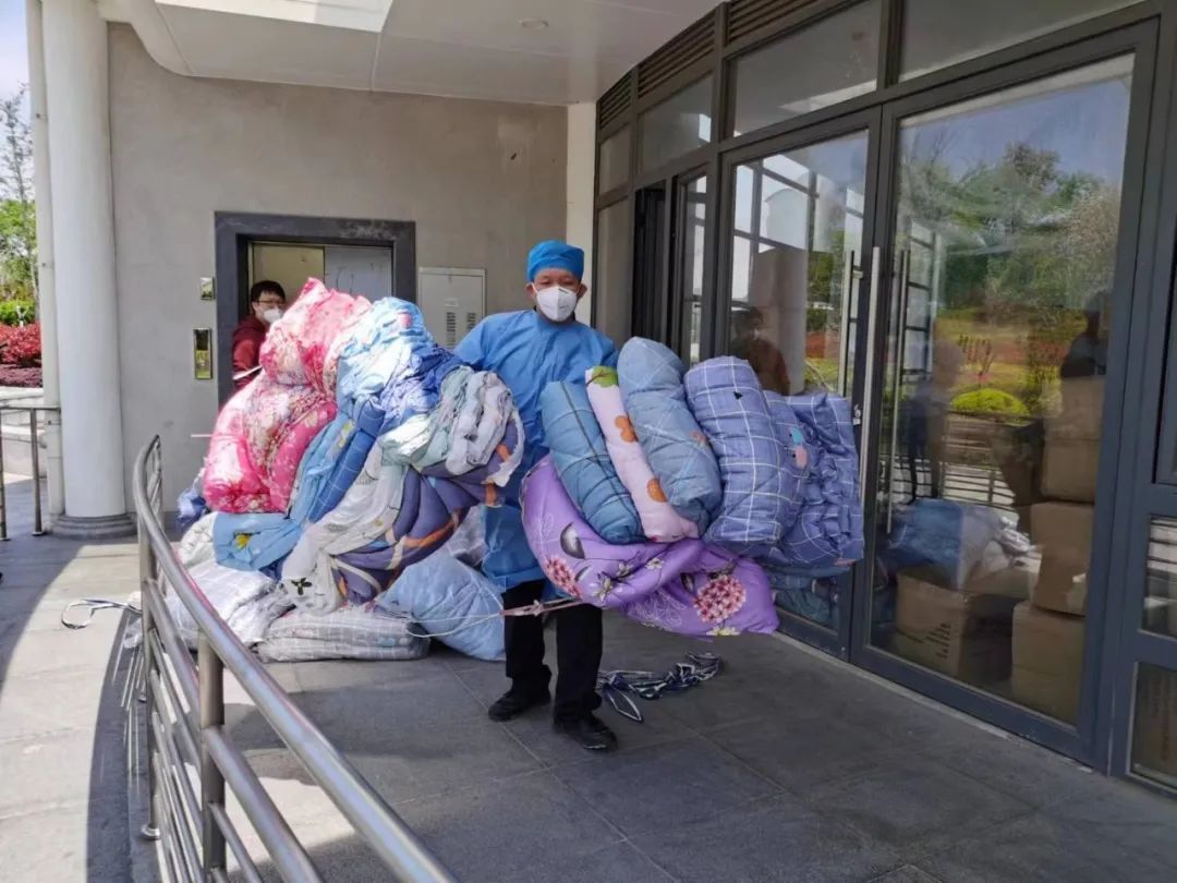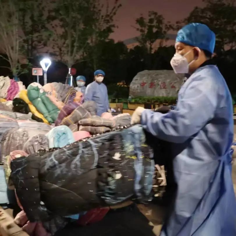 长宁区城管执法局党组书记、局长张徐身先士卒,3月30日起便一直带领区局值守人员吃住单位,作为区城运应急力量值守待命,并率队参加一次次方舱物资突击搬运工作,不惧烈阳,不辞昼夜,变成一位辛勤卖力的“搬运工”。