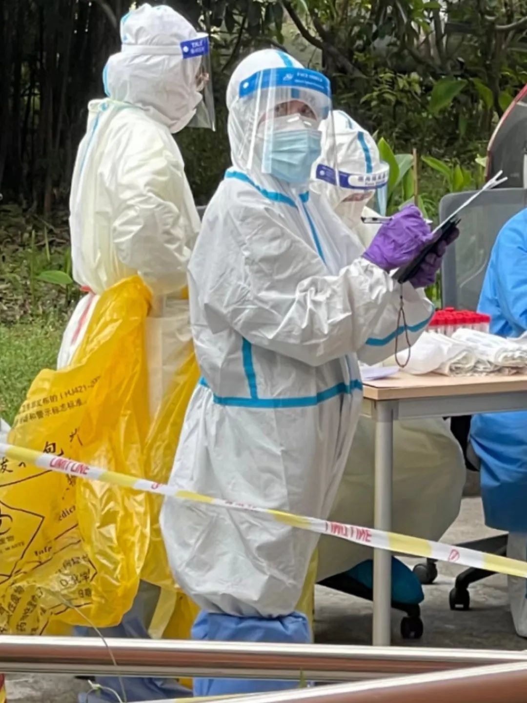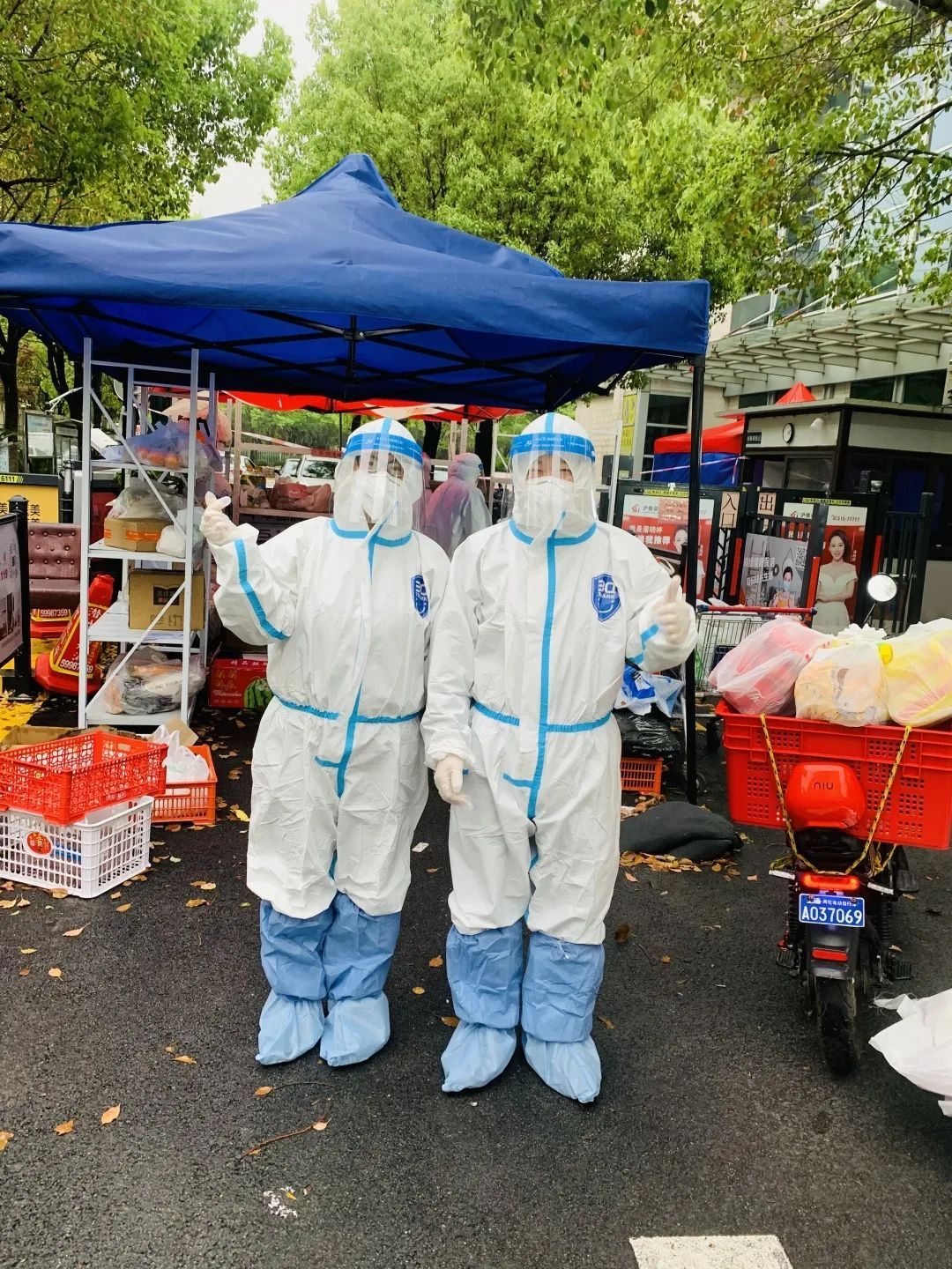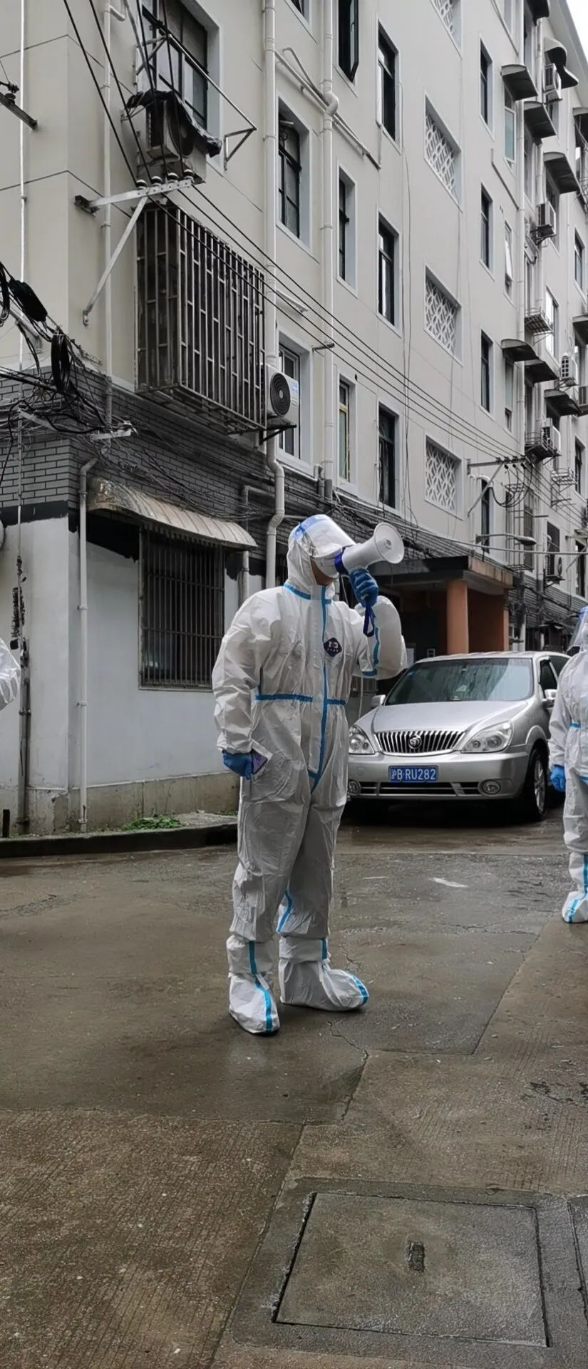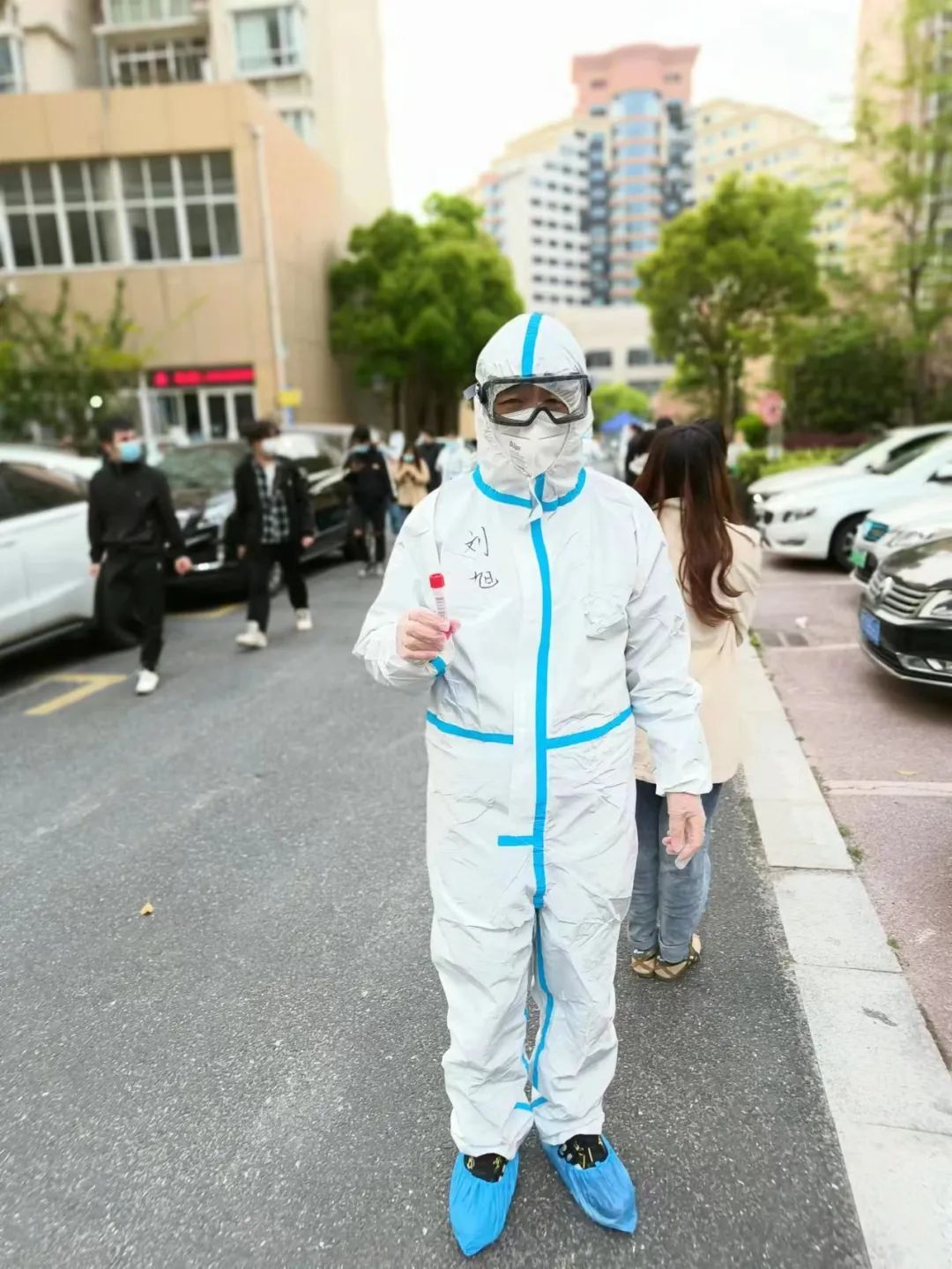 区城管执法大队机动执法中队队员朱怡杰今年刚提交入党志愿书,而这位年龄90后、身高90后的羞涩大小伙也已是机场支援的“老同志”。近期,他安顿好家中怀胎不满四月的妻子,不顾所在小区阳性高发的风险,再次毅然投身社区志愿服务,穿着“超短”大白服,做好抗原试剂逐户派发回收及核酸检测引导。善良的他会将志愿者盒饭送给楼栋里的孤老,说因为更想吃老婆慰劳的饭,会让他满血复活。