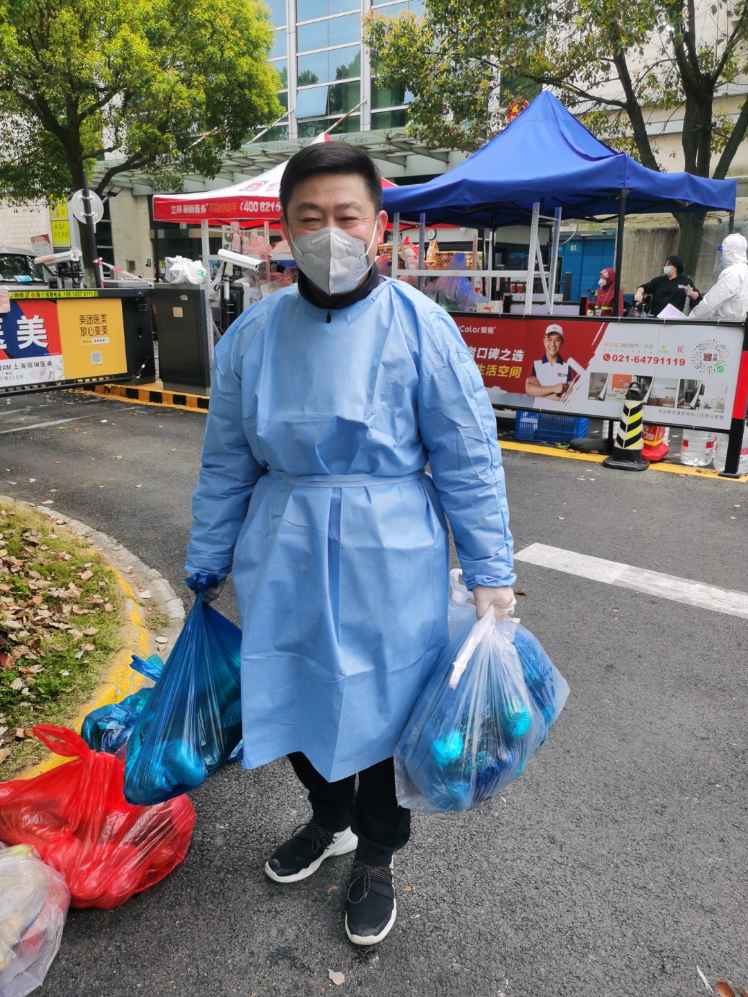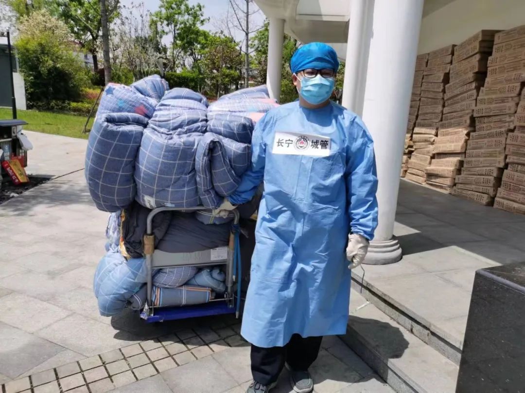 长宁区城管执法局党组副书记、副局长刘旭,副局长程万霆在居家封控管理闭环中丝毫“闲不住”,积极报到加入社区志愿服务队,为社区工作人员缓解压力。物资分发、快递转送、垃圾收集、楼道消杀,一层层爬楼、一车车运载,有脏有苦,他们却倍感充实。
