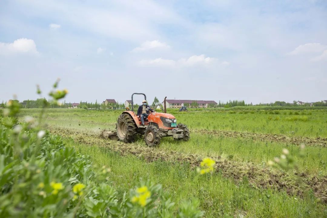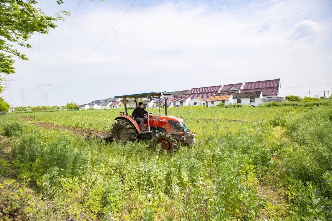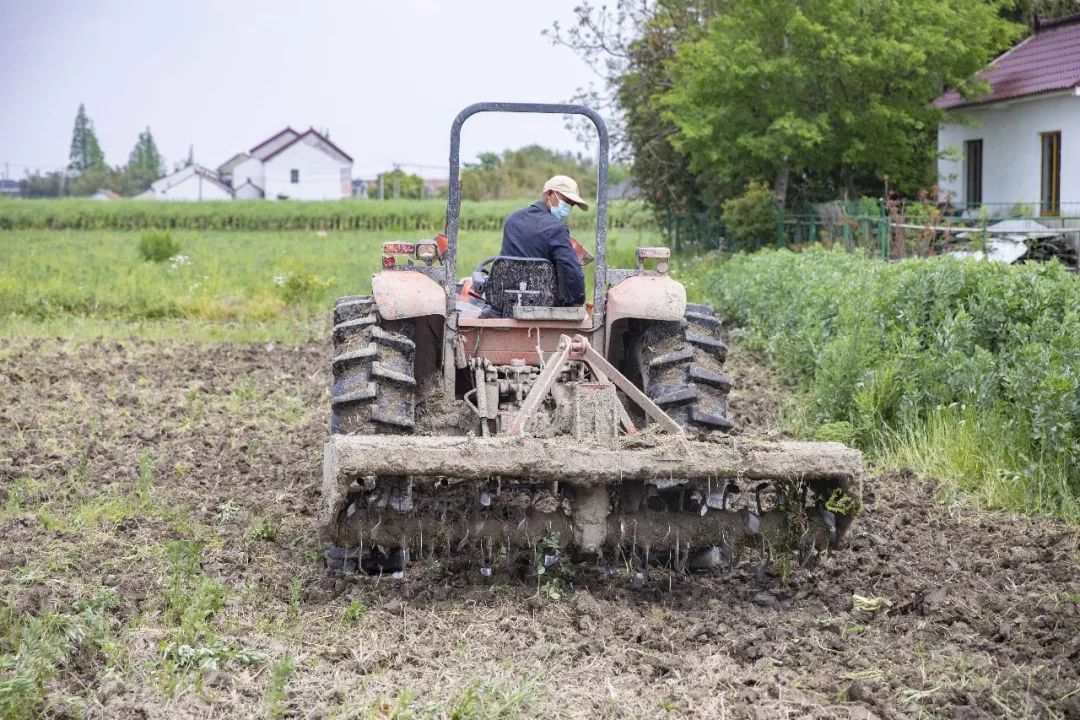 中午12:30,柘林镇王家圩村团泾三组的水稻田内,两台旋耕机轰轰作响,全力运作,今天,他们要完成共计百余亩的“绿肥压青”工作。农户张士林熟练的驾驶旋耕机,将泥土与绿肥翻起打入地下,虽然现在已是正午,但在农户眼中,春耕的每一刻都耽搁不起。