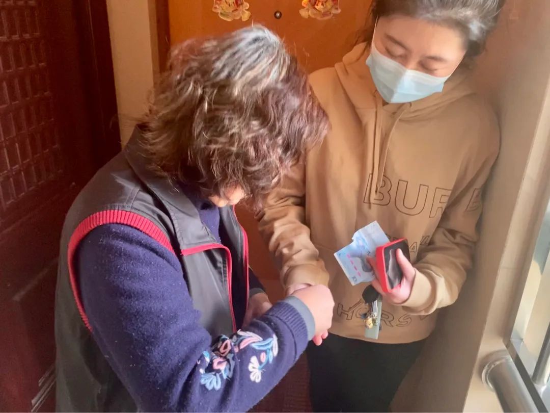 由于没有手机,居民将药款现金支付给楼栋配药志愿者