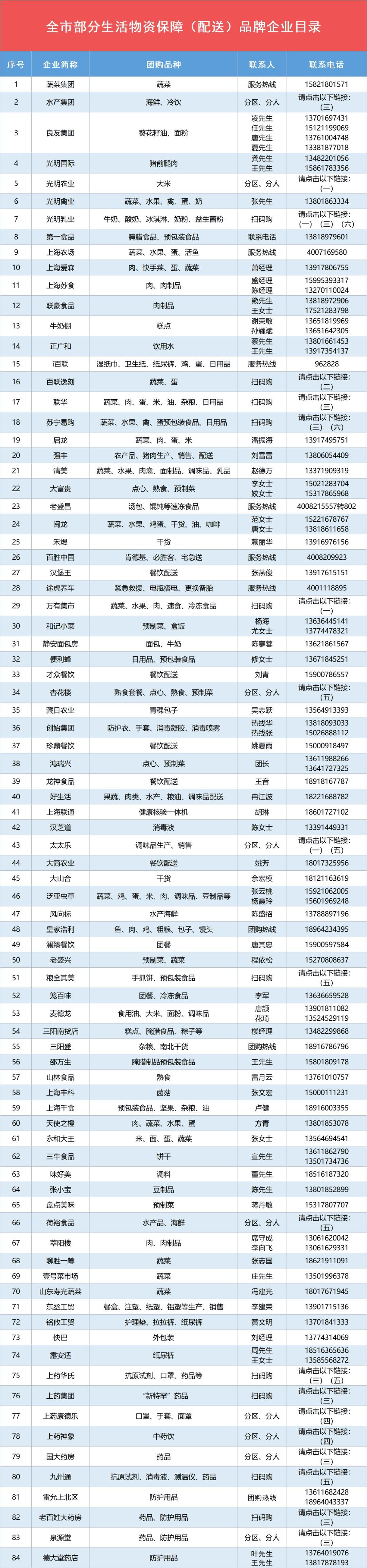 生活物资供应名录(一)