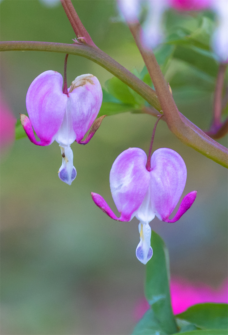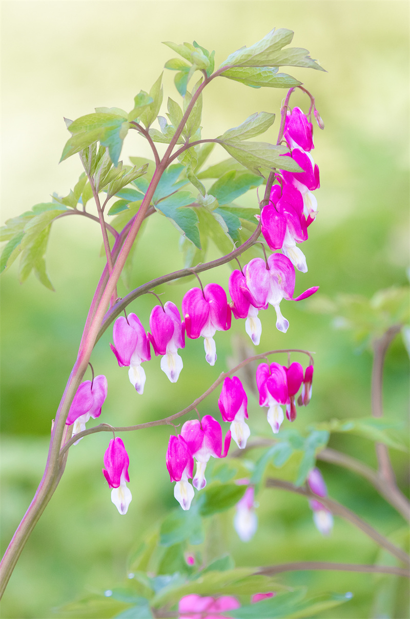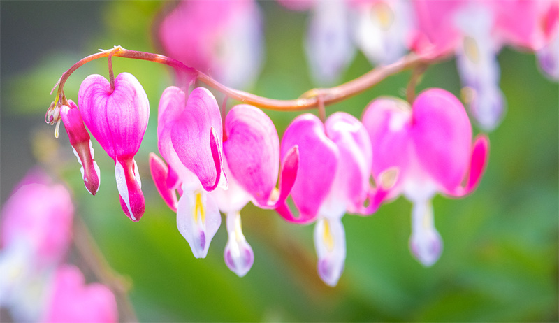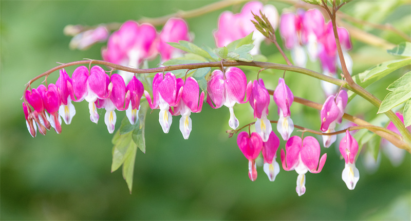 “草树知春不久归,百般红紫斗芳菲。”暮春时节,走进济南历城区荷花路街道苏家庄牡丹园,连片的牡丹花开正艳,雍容华贵,香气扑鼻。其中,最惹眼的是一种荷包牡丹,花色娇艳,犹如小荷包似的悬垂在枝头,倩丽优雅。当地人说,荷包牡丹也叫活血草、兔儿牡丹、铃儿草,叶片形似牡丹叶,花朵不大,花苞下垂,就像一个个迷你的小荷包小香囊,又像是一个个挂在枝条上的粉色灯笼,煞是可爱,吸引众多市民前来瞧瞧这种难得一见的“稀罕花”。(大众日报客户端记者 杨润勤 报道 摄影 张宝贤)