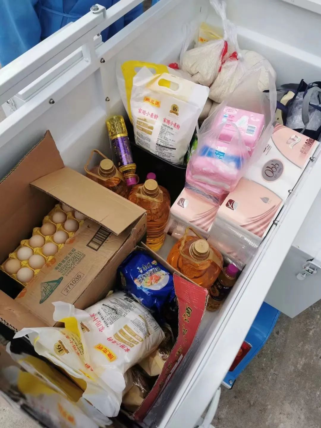 这些商品由居委会工作人员从定点保供商超统一采购而来,标价清晰的临时货架也是他们群策群力连夜自制的。负责采购的居委干部邵燕说:“不少居民反映油盐酱醋和生活用品不足,我们就从保供超市挑选一些有品牌且价格适中的商品,能保证基本生活需求。”