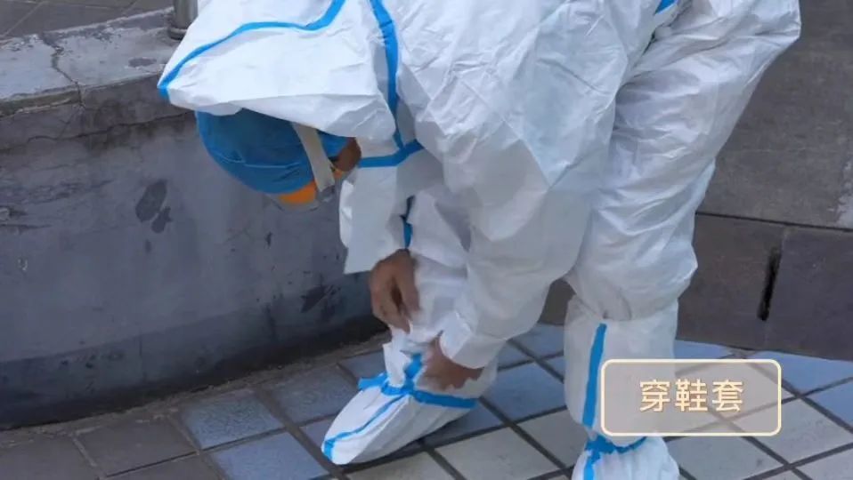 1.穿戴防护用品。在靠近阳性感染者所在楼栋的室外,按规定的顺序穿好二级防护(手消毒→戴帽子→戴口罩→戴护目镜(如选择)→穿防护服→穿鞋套→戴手套→戴防护面屏(如选择))。