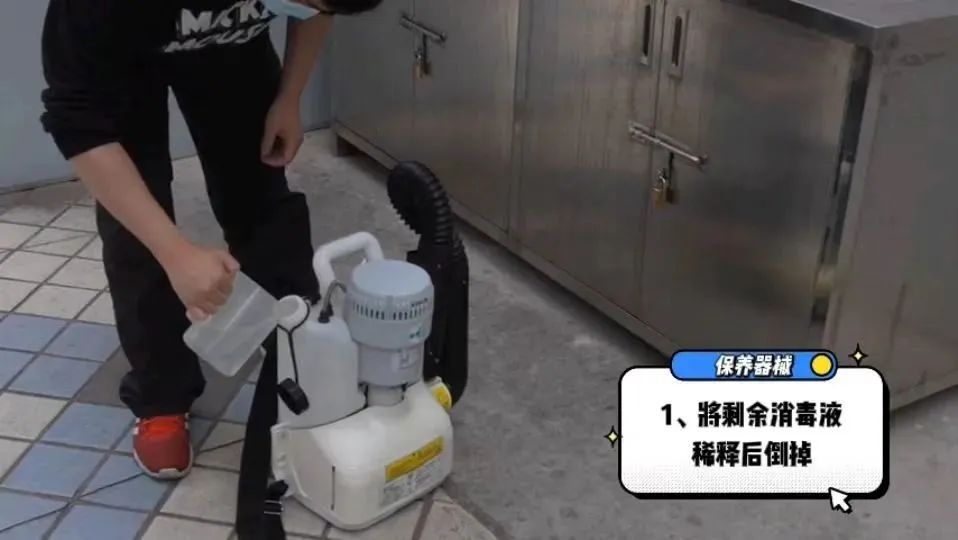 1.消毒结束后,在室外对消毒器械外表面全面喷洒或使用消毒湿巾擦拭消毒。