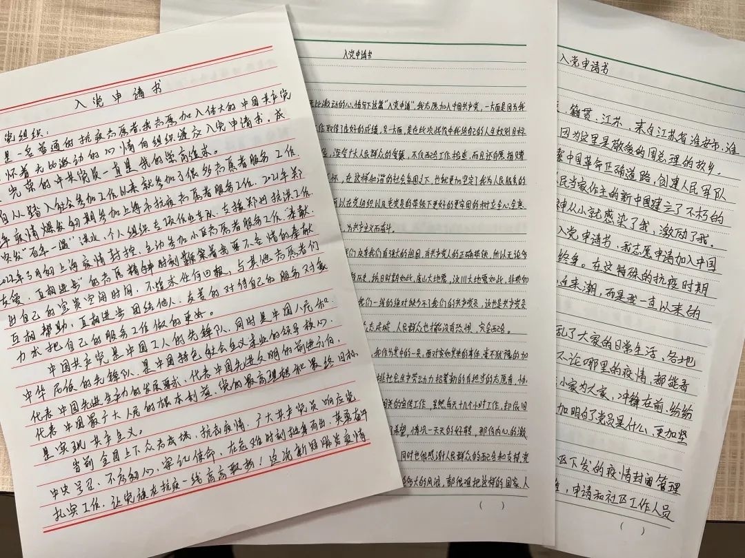 近期,金山卫镇北门居民区党支部副书记、居委会主任凌琳收到了三份特殊的入党申请书,字里行间,情真意切,让人动容。