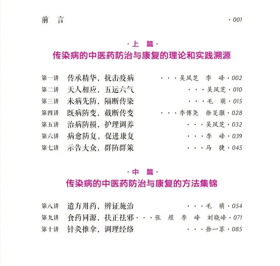 本书对“未病先防,隔断传染” “既病防变,截断传变”“治病防损,阻断病损”“愈病防复,绝断复发”等中医治未病具体措施在传染病防治和康复方面进行了研究与探索。本书的出版是希望合理运用中华医学,为读者提供正确可靠的中医药常识以及面对传染病时的居家防护有效措施。希望通过本书告诉读者,面对传染病,除了治疗和防护,更重要的是提高身体和心理的抗风险能力。