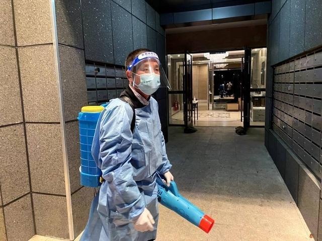 4月18日晚,小区开始第一次全面消杀。队员们全副武装,俨然成为专业“消杀员”。消毒液配比、任务分工、重点区域擦拭……这些工作无不需要胆大心细、一丝不苟。
