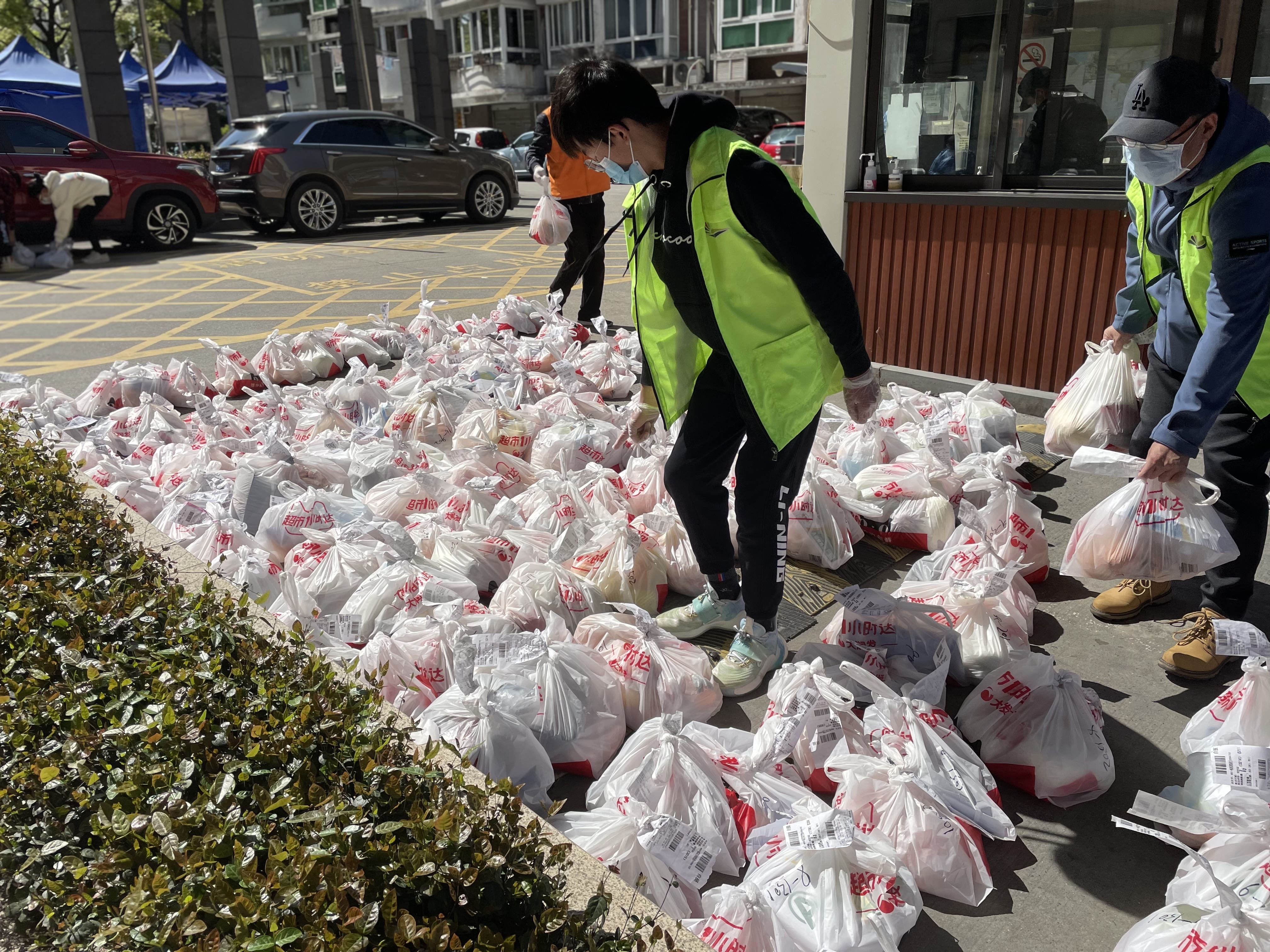 彭浦镇阳光苑小区现共有约80位志愿者(不包括楼组长),按照不同服务内容,分为不同小组,开展核酸检测、小区巡视、“最后一公里”分发配送、团购报备等。在这个春天,志愿者温暖了整个小区。