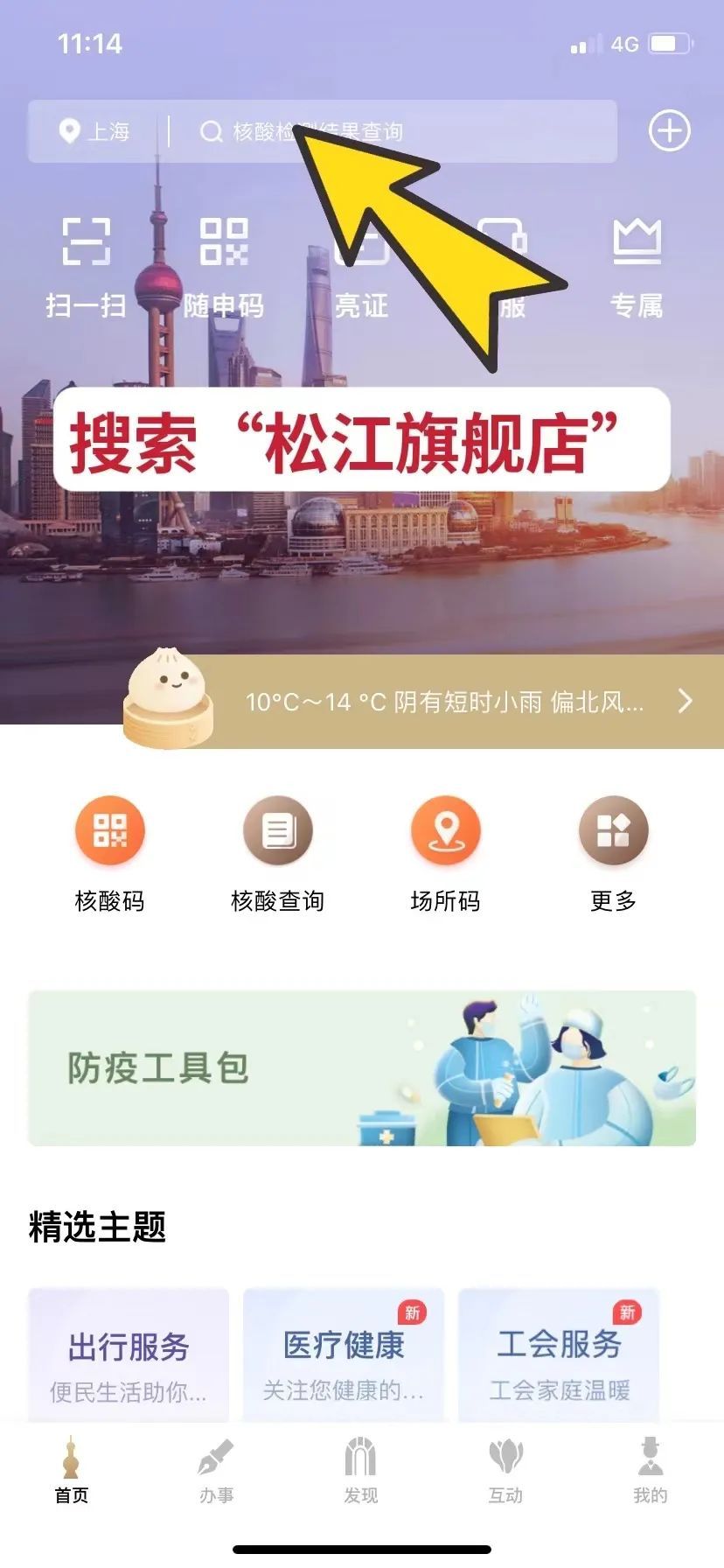 1、打开“随申办市民云”,搜索“松江旗舰店”