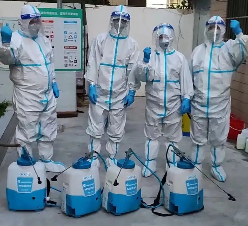 康宁启程负责人李桂珍介绍,消杀人员必须全副武装,隔离衣、防护服、头套、护目镜、面屏以及双层鞋套、手套和口罩,“相当于置身在密封的‘温室’里”,再背上40多斤重的消毒设备,在小区不同的楼道之间爬上爬下,还要完成换药剂、喷洒等操作。“一次至少持续两个多小时,等到脱了防护服,闷着的皮肤出现过敏症状、肩膀勒得刺痛是常有的事。”