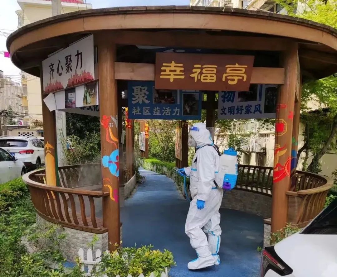 疫情期间,承担程家桥街道消杀任务的是康宁启程爱国卫生服务社(以下简称“康宁启程”),16个人包揽了8个居民区所有小区的核酸检测采样点、地下室、垃圾箱房等公共区域,以及阳性感染者所涉楼栋和街道辖区内单位、商铺的消杀。