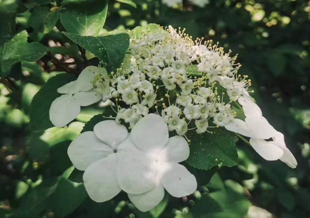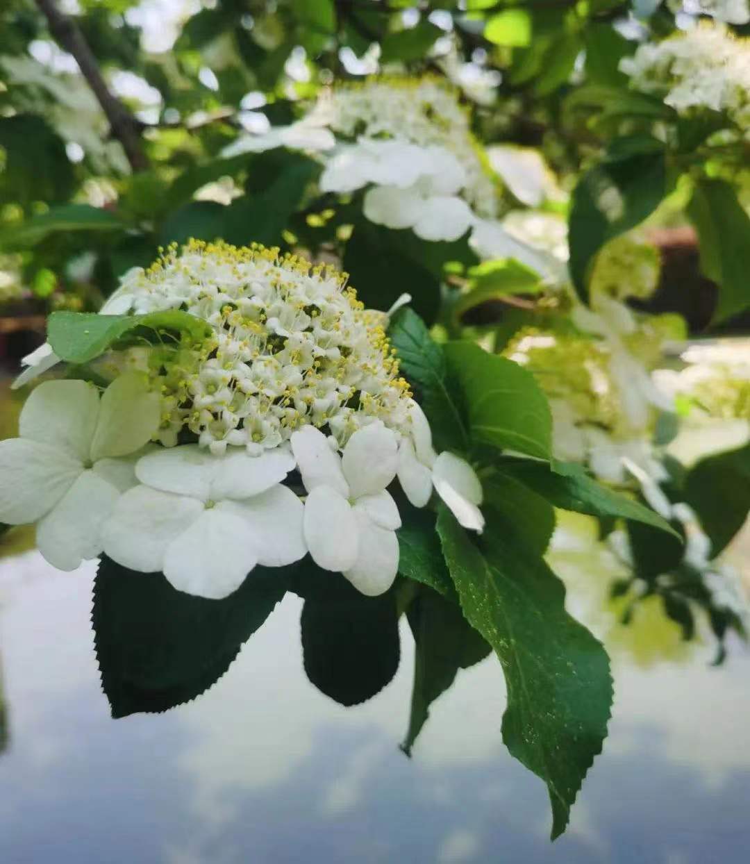 美不胜收的还有木绣球,位于古城公园2号门附近护城河旁。每年4月开花。木绣球的花朵成球形,每当开花时,就好像一个个白色圆球挂在枝头,俏皮可爱。木绣球的单一花瓣其实很小,只不过它是由无数个小花瓣组合成的大花球,所以它的花语有“团聚”之意。