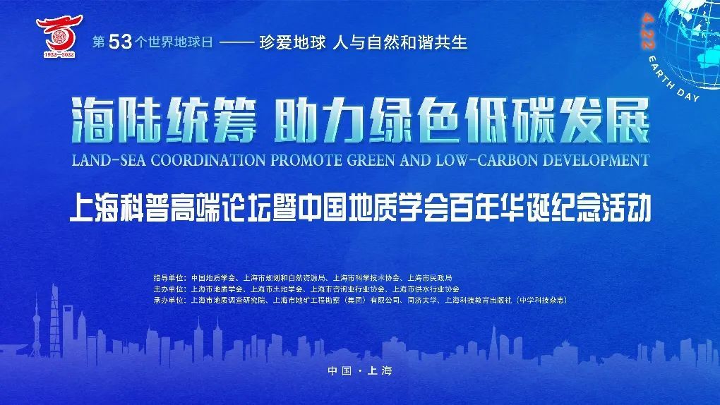 4月23日,为纪念第53个世界地球日,由上海市地质学会发起,联合上海市土地学会、上海市咨询业行业协会、上海市供水行业协会主办的“上海科普高端论坛暨中国地质学会百年华诞纪念活动”成功举办。受上海疫情影响,论坛采用线上直播的方式进行。