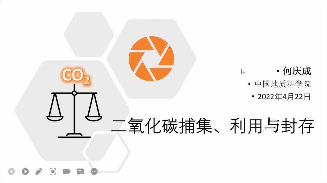 何庆成研究员以“二氧化碳捕集、利用和地质封存”为题,介绍了碳达峰碳中和国家战略的背景和意义,并围绕气候变化,全球碳循环,国际共识,碳捕集、利用与封存技术,CCUS在碳中和中的定位及国内外的应用等方面进行了全面的阐述。