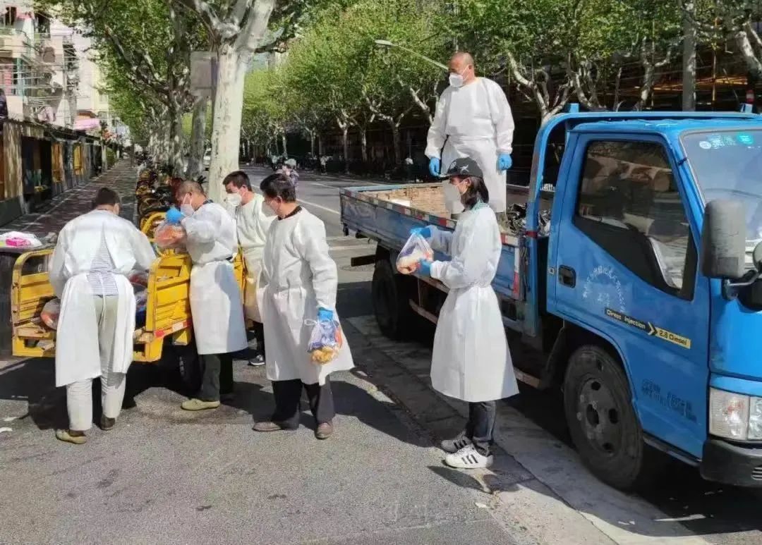 从4月1日浦西全域实施封控至今,绿化公司修剪班班长陆雄鹰和队员张毅两名党员,驾驶班班长姚志华以及天山五村养护班组工人,便一直24小时坚守在应急值守点。这期间,他们身兼数职,既负责应急抢险工作,又充当物资联络员、运送员和搬运工,每天连续“作战”长达10个小时以上,不断为区域内近70个点位和长宁区方舱医院及集中隔离点运送保供物资。