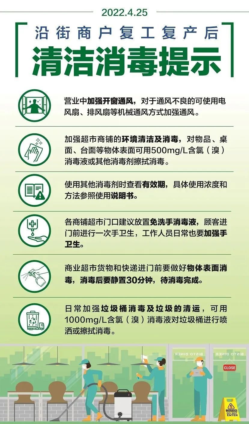 针对近期沿街商户复工复产,市环境整治消杀工作专班、市爱国卫生运动委员会办公室、市疾病预防控制中心、市健康促进中心发布“六要点”提示,要求沿街商户进一步做好环境清洁与预防性消毒: