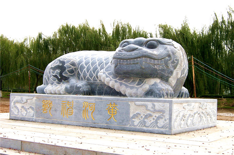 另值得一提的是,2005年5月,济南黄河河工于泺口险工59号坝下掘得石兽一尊。经专家鉴定,断为明代之物,命名曰黄河神兽。神兽狮首鹿角,圆目利齿,浑身满饰鳞纹,长尾收于胯下,有镇水之神功,救生之善行,系古代传说中的龙生九子之一——霸下,现在景区内的为放大版。