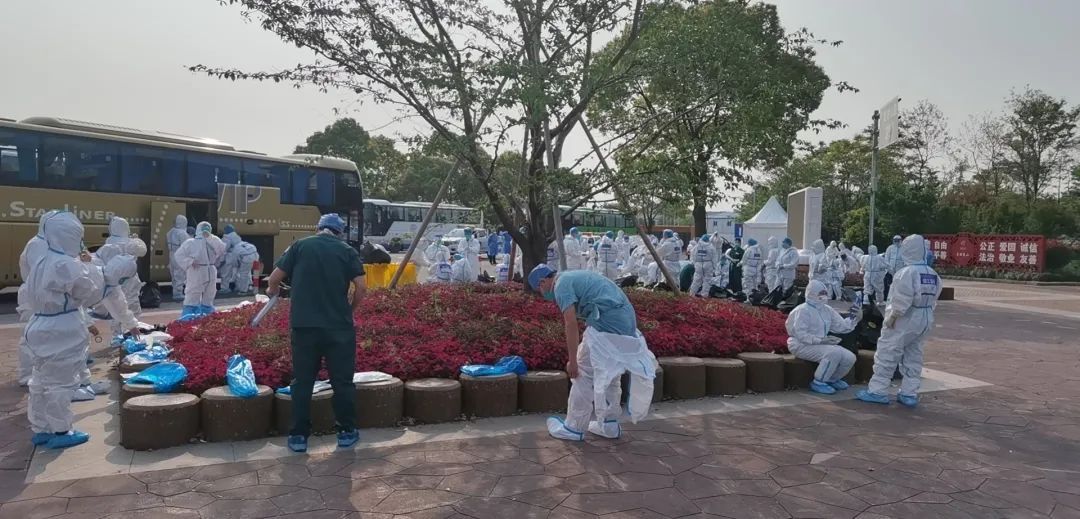 3月28日宝山区顾村镇决定顾村公园三号门作为外省市援沪医疗队集散点,每天早上400余人在三号门更衣、集合、分散至各检测点,如厕问题以及周边环境的保障则成为重点工作。