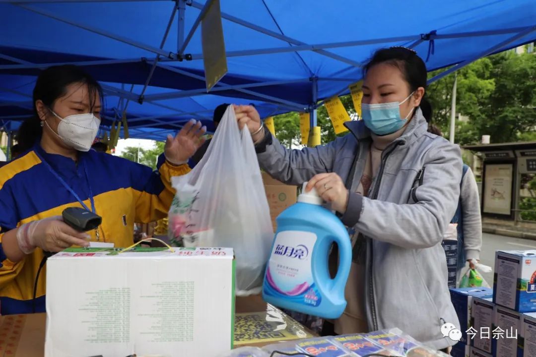 醒目的蓝色帐篷、明码标价的货品、快捷方便的手机支付……家门口的流动超市一经上线,就受到了小区居民的欢迎。每日超市还会根据居民实际需求,适时补充货品,保证供应充足。