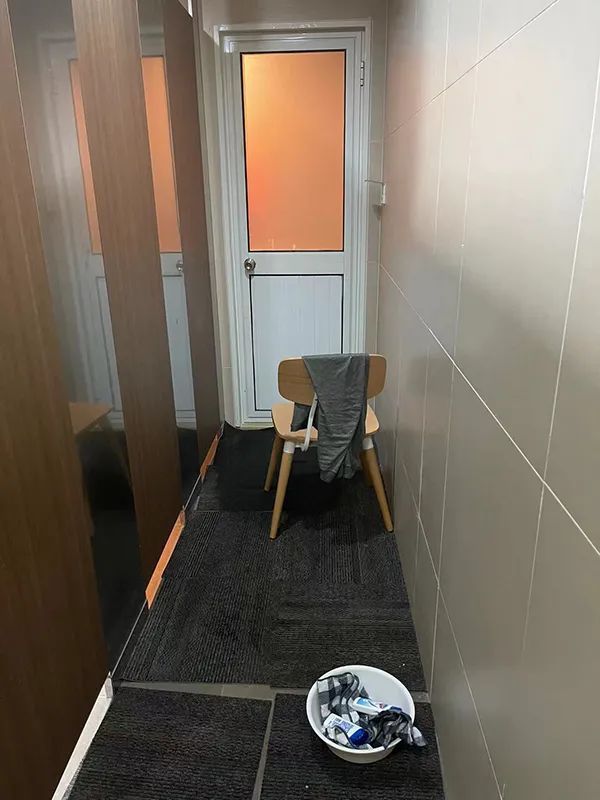 封控初期,他们遇到了一些困难。整栋大厦只有一两个淋浴间,起初是给在楼宇值班的物业、保安、保洁工作人员使用,大楼封闭后就向全体人员开放。一开始排队严重,周典第一次去洗澡时,凌晨1点半去还是得排队,后来大家陆陆续续洗到了凌晨2点,而且因为是电热水器,烧水时间不足,前几次基本都是洗冷水澡。