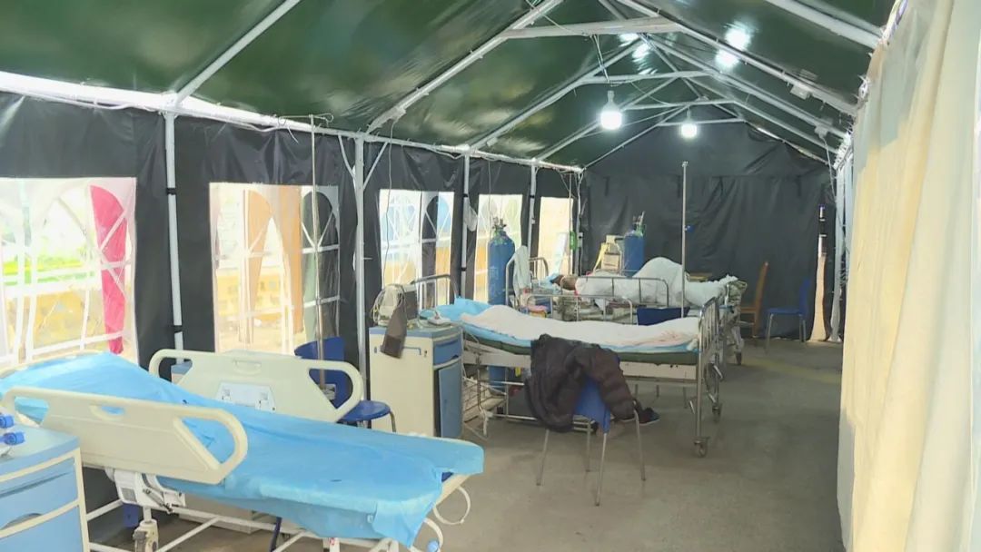 此外,如果原来的急诊大厅遇到突发状况,需要停诊消杀,在急诊大楼的南侧,同样是绿色帐篷组建起的一片区域,即预备的第二急诊区,则可以“挺身而出”,不影响急诊看病。