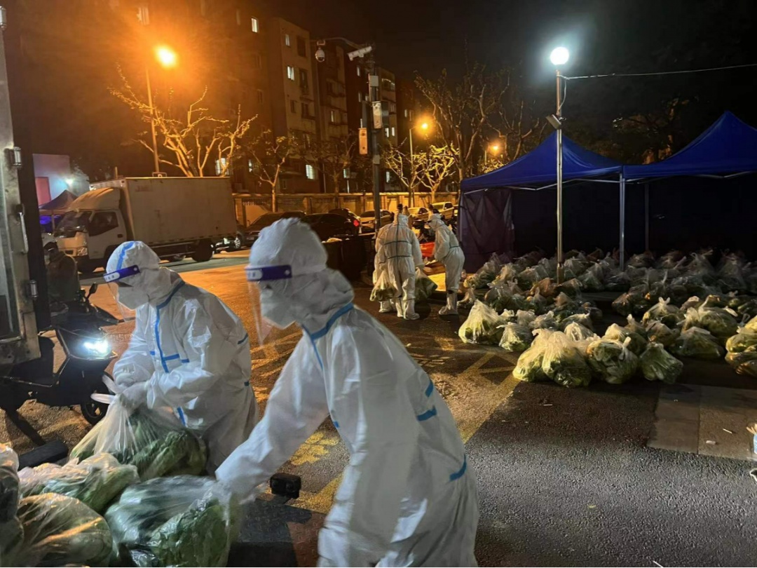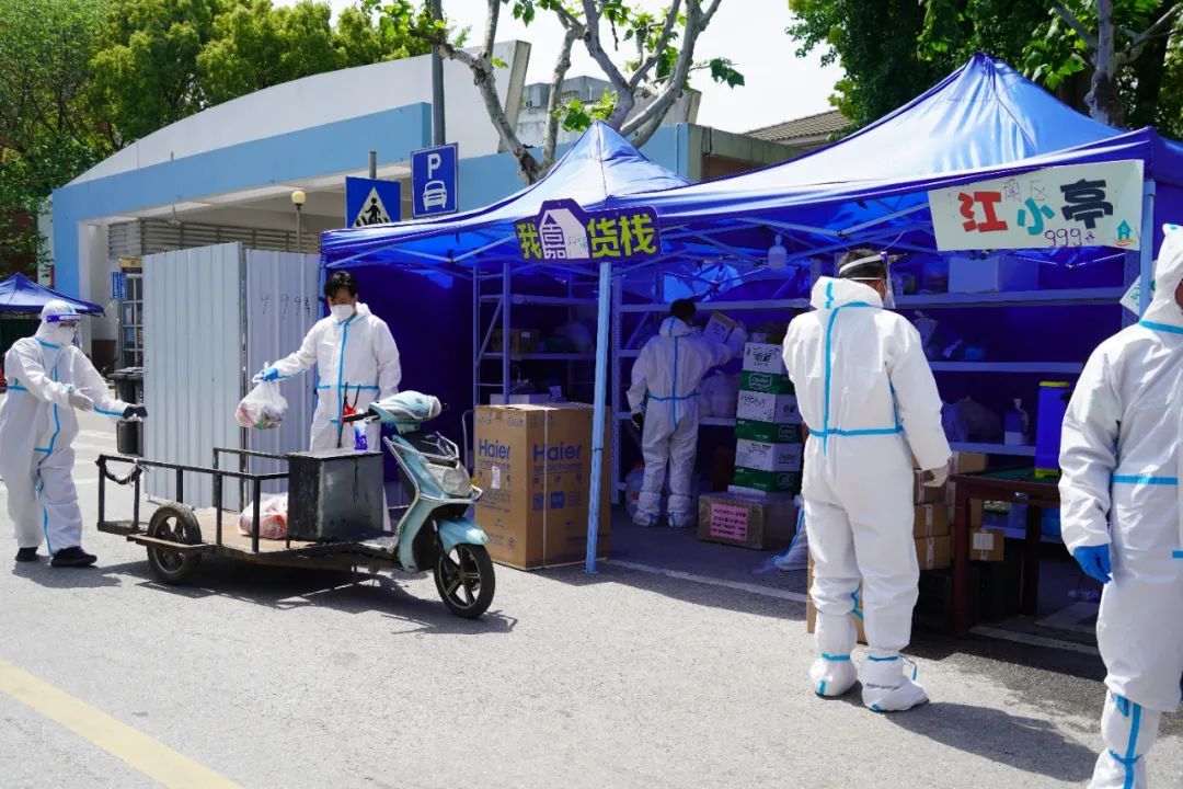 在拔点期间,为了将物传人的概率降到最低,富友社区居委规定团购物资集中放置在隔离墙外的无接触式配送驿站。消杀后,静置至少30分钟,再由“大白”完成“最后100米”的配送。截至目前,已团购物资近5000份。