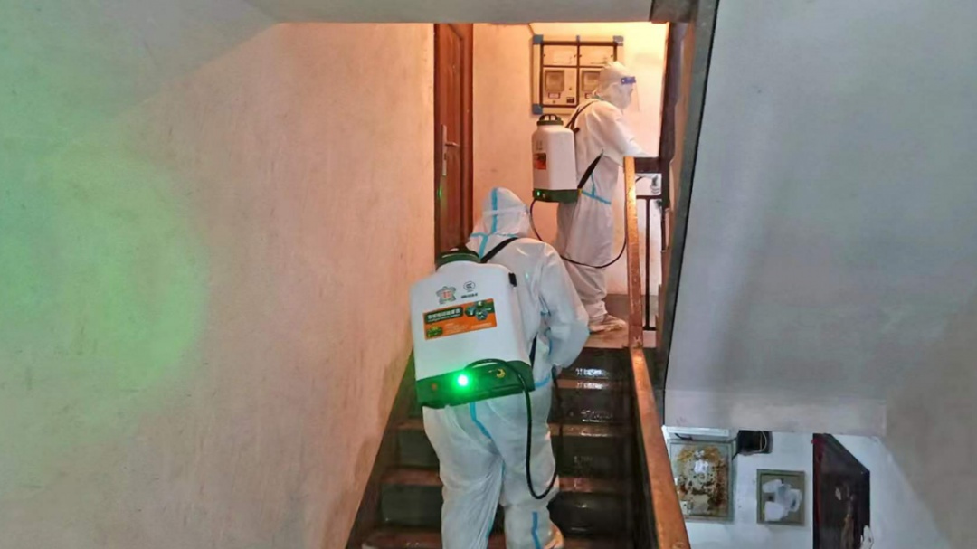 居委还联合小区物业成立了消杀专班,对小区快递投放点、楼道、垃圾桶等公共区域进行定点、定时消杀。另外,社区设立了医废暂存区,落实专人负责,做到日清日结。拔点工作组定期安排志愿者为重点区域楼道分发防疫物资,如消毒片、喷壶、口罩、手套等,引导居民做好日常消杀。