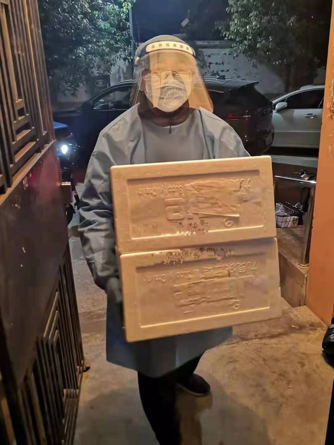 为节约宝贵的大白防护服资源,他们主动放弃街道指挥部机关午餐和休息的安排,就地快速解决午餐,累了就躺在路边休息。为了最快速度将物资送到社区居民手中,他们在工作间隙就物资分装、配送流程及人员安排开展头脑风暴,向街道指挥部建言献策,进一步优化流程,提高配送效率。截至4月26日,他们所在的支援队为街区内27个居民区搬送生活物资共计1万多箱,同时还为87家商务楼宇运送面包、牛奶、饼干等食品1.7吨。