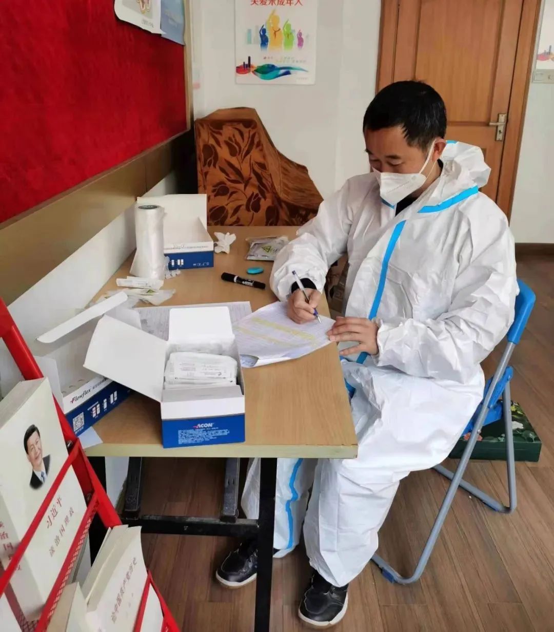市社联学会管理处吴宗勇自3月底以来一直在居住地社区一线参加抗疫志愿工作,协助居委完成对小区内相关物资进行消杀、分拣、派送,同时协助开展核酸检测和抗原试剂盒的分发派送等工作。接到徐汇区委组织部通知后,加入徐汇区龙华街道志愿者行列,协助居委书记做好政策宣传、信息报道、药品配送、物资发放、核酸筛查等工作。