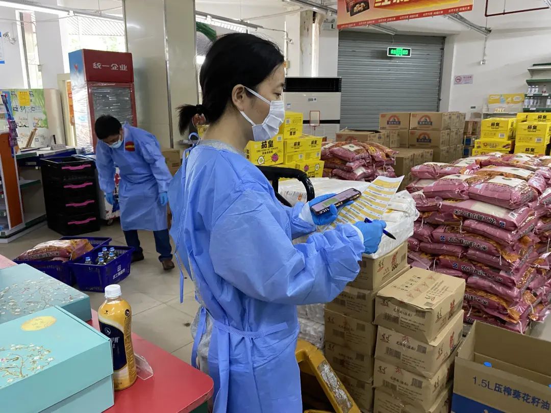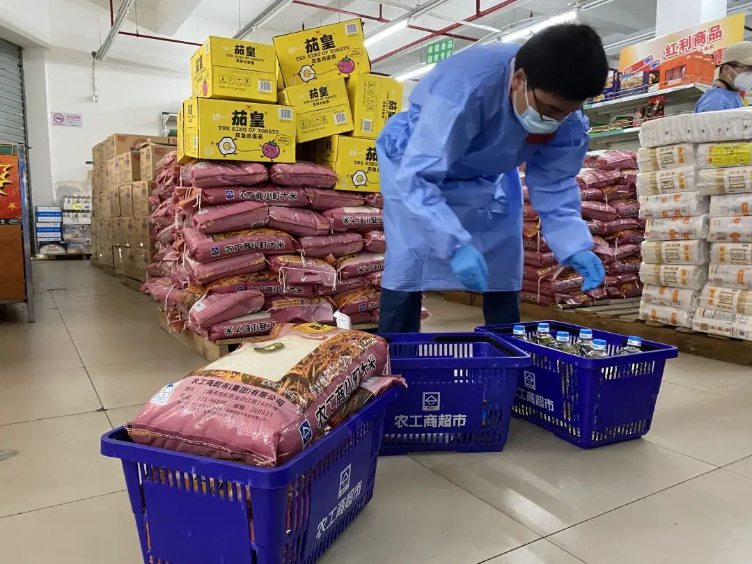 西渡街道的农工商超市,目前仅有三位工作人员坚守岗位,除了每天接收物资、清点货物,还要时不时为线上订单配货,人手明显不足。可超市紧挨着的就是一个大型社区,随着封控时间的延长,大家对于物资的需求不断增多。超市有货物没有人手,而小区居民需要生活必需品,如何去解决呢?