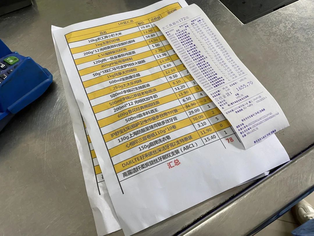 “第一次买的时候,每个人都把需求发在微信群里,种类、数量都太多,我们都算不清楚。最后金额都对不上,我们三个片区长都贴了钱。”凌美丽作为片区长,在初次的混乱后,很快就制定了详细购买流程。每次由楼组长统计所在楼道居民需求,再汇总给片区长,片区长最终列出清单。随后,在指定日,线下到超市配单、再统一到小区配送,最大限度保障了文怡花园小区居民实现就近采购的便利。