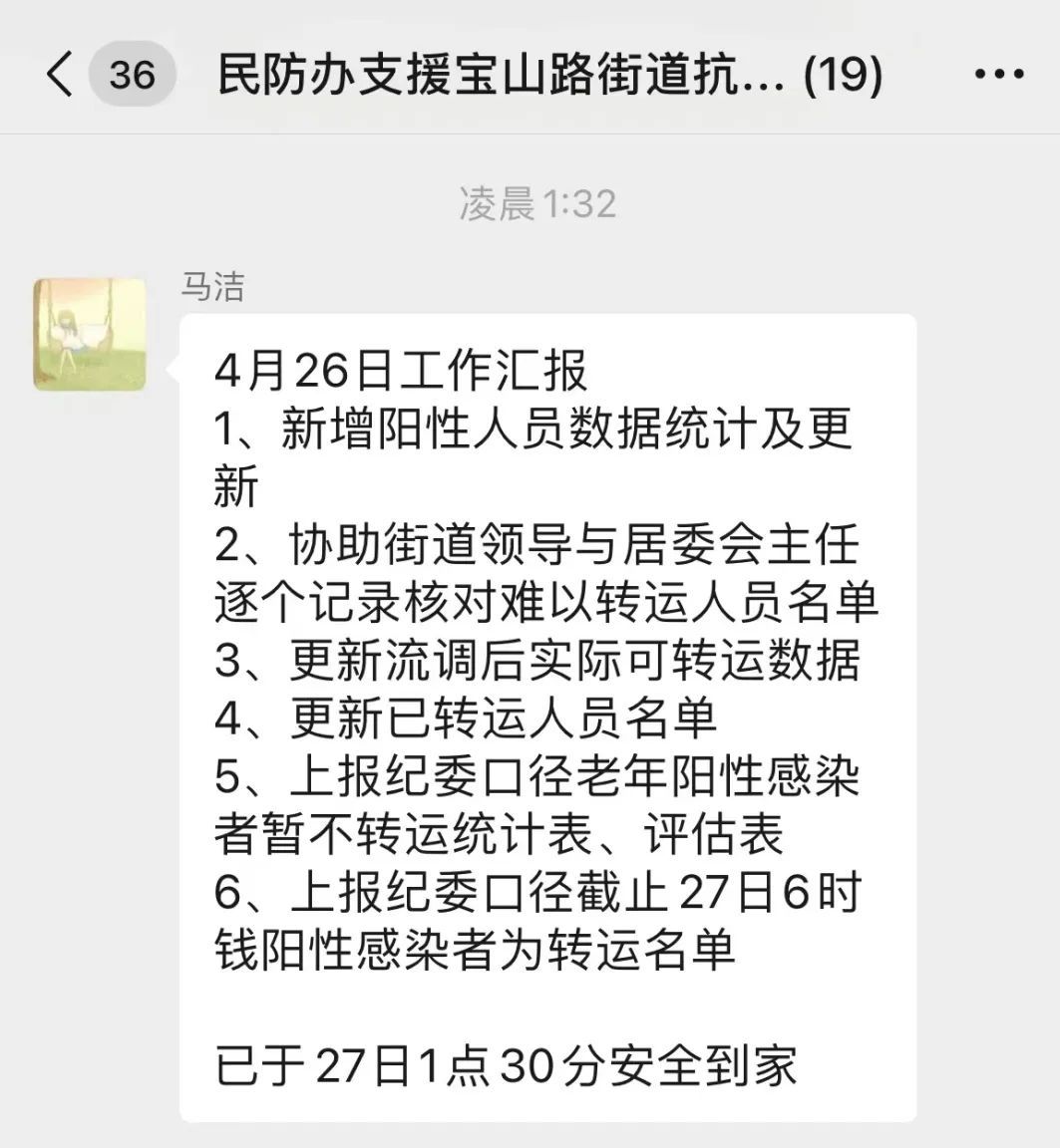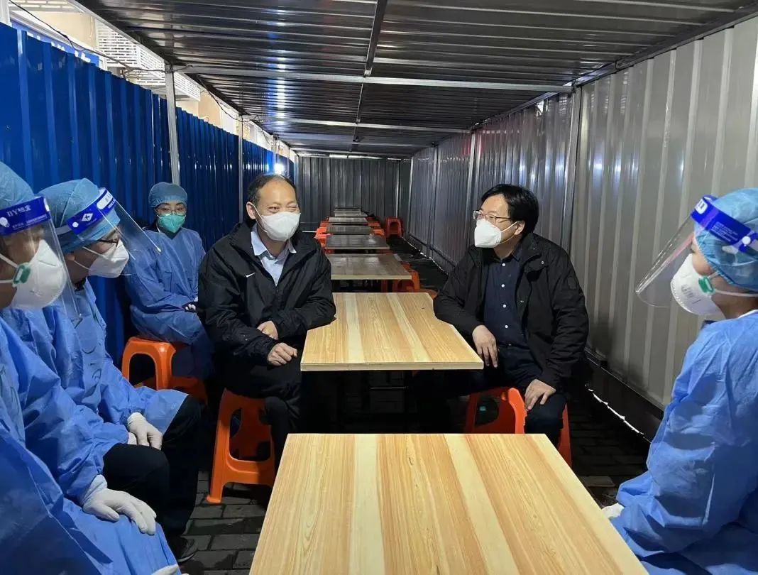 4月26日,张主任与宝山路街道党工委书记胡建文一同前往止园新村居民区、宝山路街道城运中心,实地察看人员转运相关情况,看望慰问民防系统一线支援人员并对有关具体工作进行了布置。张主任强调,当前老旧小区是疫情防控的难点,在社会面清零攻坚的关键时刻,要坚定信心,勇于担当,对照“四应四尽”要求,务必抓实抓细老旧居民区各项清零攻坚重点任务。张主任要求,民防支援队伍要发扬不怕苦不怕累和连续作战的精神,无论烈日当空还是大雨倾盆,要坚持在一线冲锋陷阵,与时间赛跑,与病毒作战,以一线战“疫”的有力行动和实际成效诠释新时代民防精神,展现新时代民防风貌。