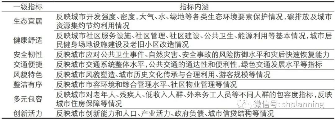 2020年自然资源部发布的《国土空间规划城市体检评估规程》(TD/T1063-2021)提出从安全、创新、协调、绿色、开放、共享6个维度设置城市体检评估指标,评估国土空间规划现状及规划实施情况。2021年住房和城乡建设部下发的城市体检指标包括生态宜居、健康舒适、安全韧性、交通便捷、风貌特色、整洁有序、多元包容、创新活力8大类,具体包含65项指标,同时要求地方结合自身情况制定特色指标,加强对相关问题的跟踪分析。