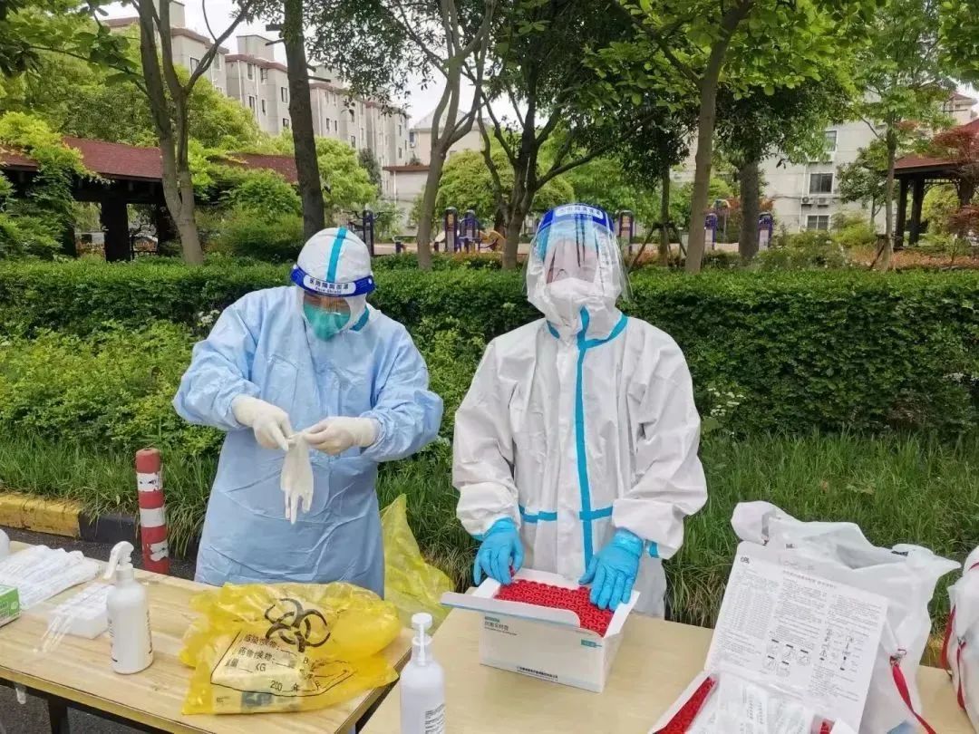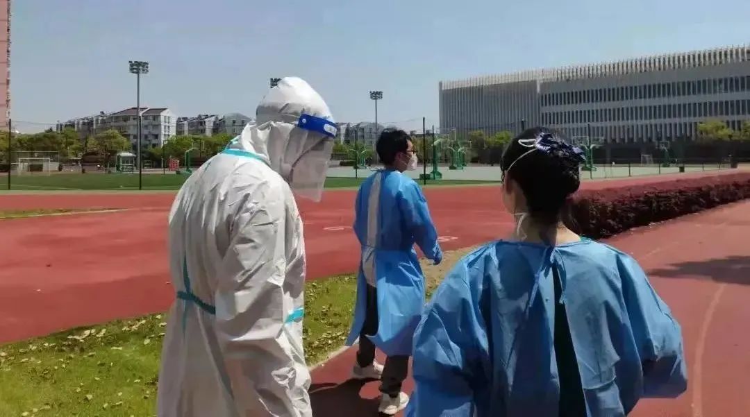 4月24日晚,宝山区体育局四级调研员周少华带领卢伟华、胡力冶、仇语明、陈士泽,到杨行镇社区党群服务中心报到。周少华一行于晚上11点基本安顿好,第二天一早7点,就准时到达杨行镇湄浦村展开志愿工作。队员们穿着防护服,在阳光下工作4个多小时,里面衣服湿透,但他们依然顺利完成了湄浦村1300人的抗原和核酸检测志愿服务工作。