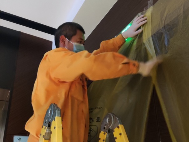 杨师傅在维修岗位上兢兢业业且乐于助人,共完成卫生间疏通、电路维修、门锁改造等应急维修20余处,修复脱落的通风口、消防通道、电梯井缝隙封条50余处,为隔离酒店解决诸多急难问题。
