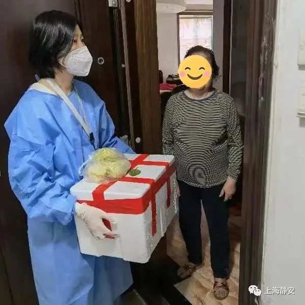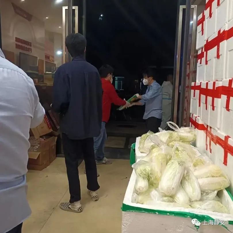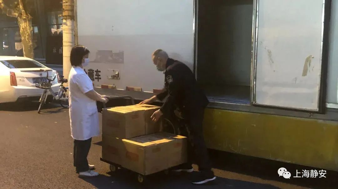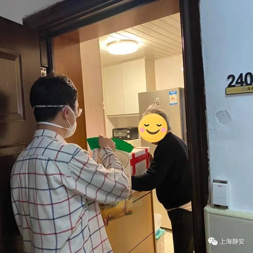 4月23日晚,物资到达后,居委会、社区党员、志愿者们抓紧卸货分发,完成运送“最后100米”,将物资及时送到社区老人们的手中。老人们感动地说着“谢谢”“辛苦了”“虽然你们已经非常忙碌了,但是仍然惦记着我们”……