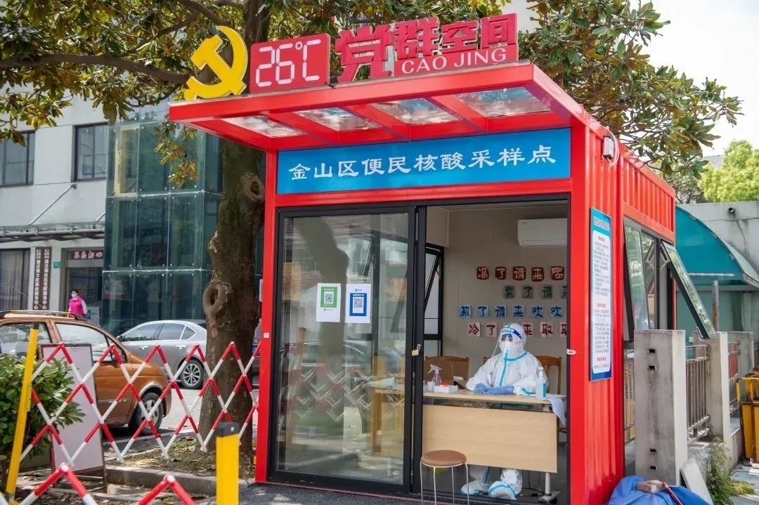 漕泾镇社区党群服务中心“26℃党群空间”便民核酸采样点已经对外开放,方便周边居民、企业职工、流动快递员及保供人员等核酸采样,这个便民核酸采样点正是漕泾镇青创联会员企业上海遥拓集装箱有限公司总经理杨晨捐赠的。